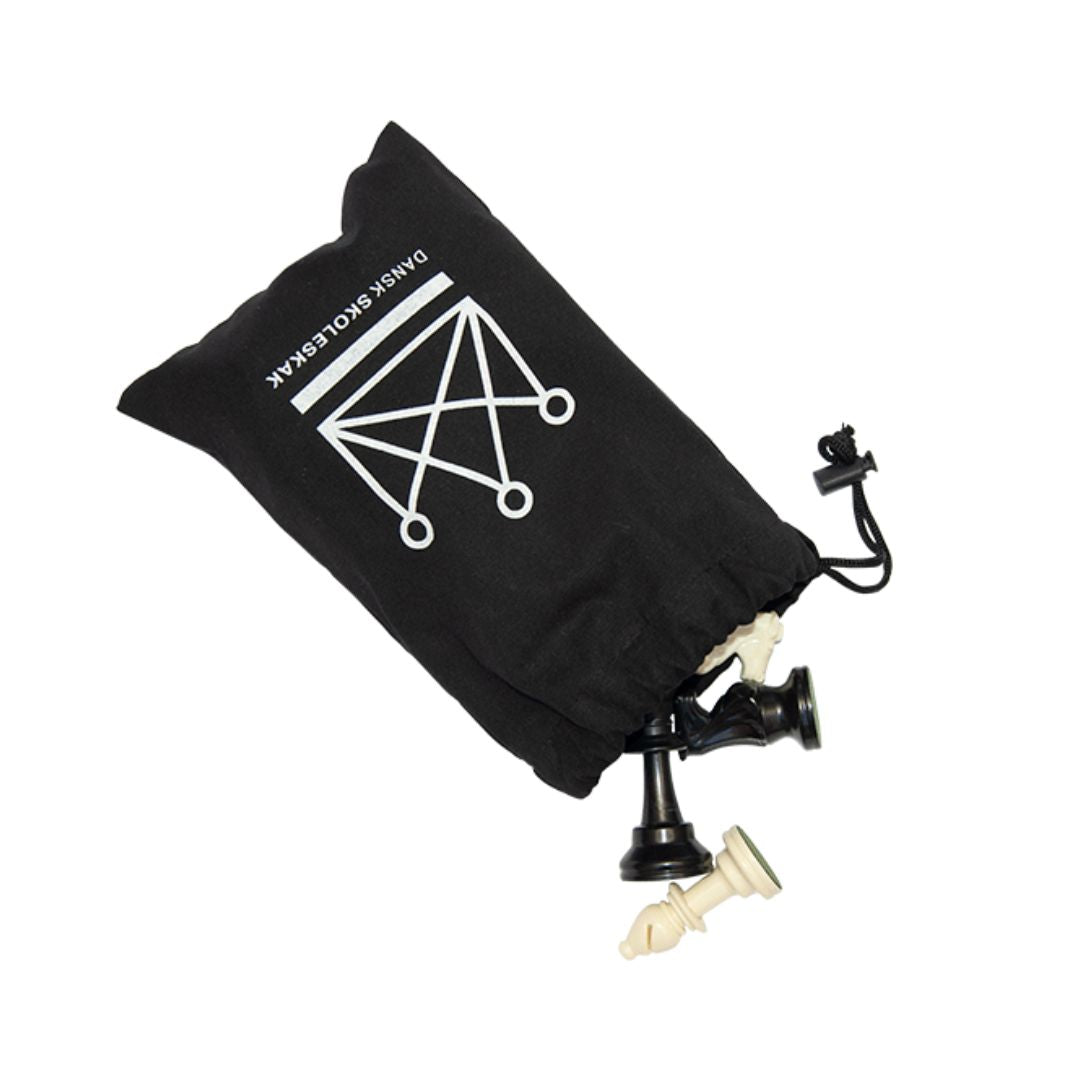 De medfølgende Staunton-brikker er fremstillet i kvalitetsplast og er særligt slidstærke, holder til udendørs brug og rengøres let. De er perfekte som begyndersæt. Brikkerne opbevares sikkert og stilrent i den sorte stofpose, der sikrer, at ingen brikker mistes under transport.